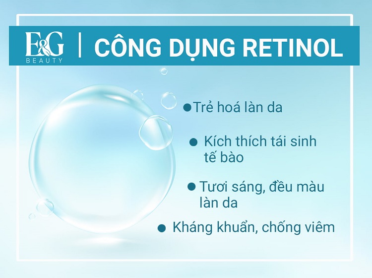 Retinol có rất nhiều công dụng, đặc biệt là trong việc chăm sóc da. Retinol (Vitamin A) giúp điều chỉnh các phản ứng miễn dịch bẩm sinh cũng như duy trì cân bằng nội môi trong các mô và niêm mạc biểu mô nhờ chất chuyển hóa của nó là axit retinoic (RA). Do khả năng thúc đẩy sản sinh collagen, resistin và cathelicidin giúp duy trì hệ vi sinh có lợi trên da, giảm tiết bã nhờn, trẻ hóa da, trị mụn, giảm sắc tố trên da,… Bạn có thể tham khảo nội dung bên dưới. bên dưới để hiểu chi tiết hơn retinol được sử dụng để làm gì.